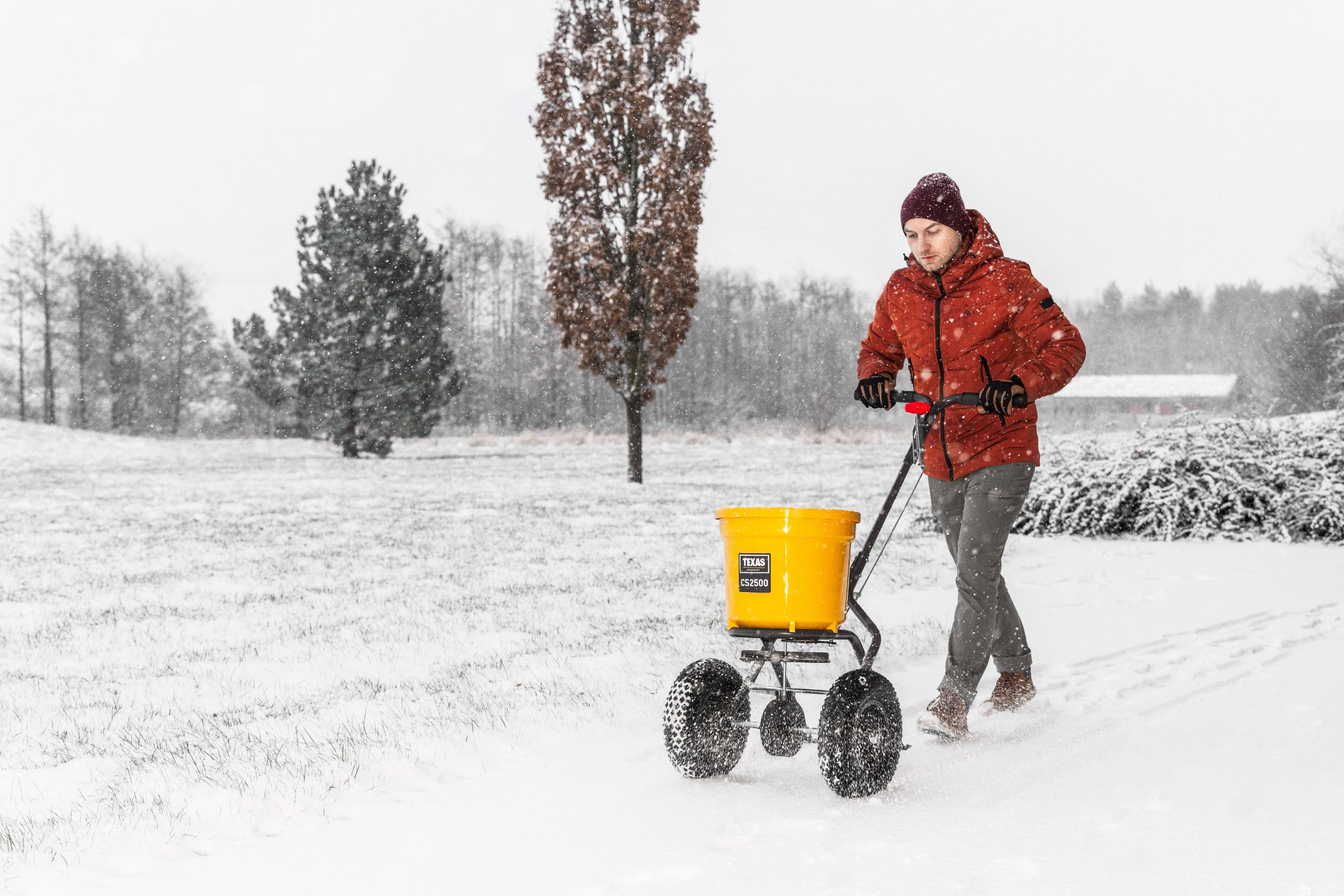 Når frosten rammer og indkørslen, gangstier og fortov bliver glatte, så gælder det om at komme ud med salt eller grus. Og med en af TEXAS’ spredere er det nemmere end nogensinde. Du kører bare afsted, og så fordeler din spreder saltet eller gruset rigeligt og ligeligt overalt, så slipper du for at gå med en pose og kaste hist og her efter forgodtbefindende.