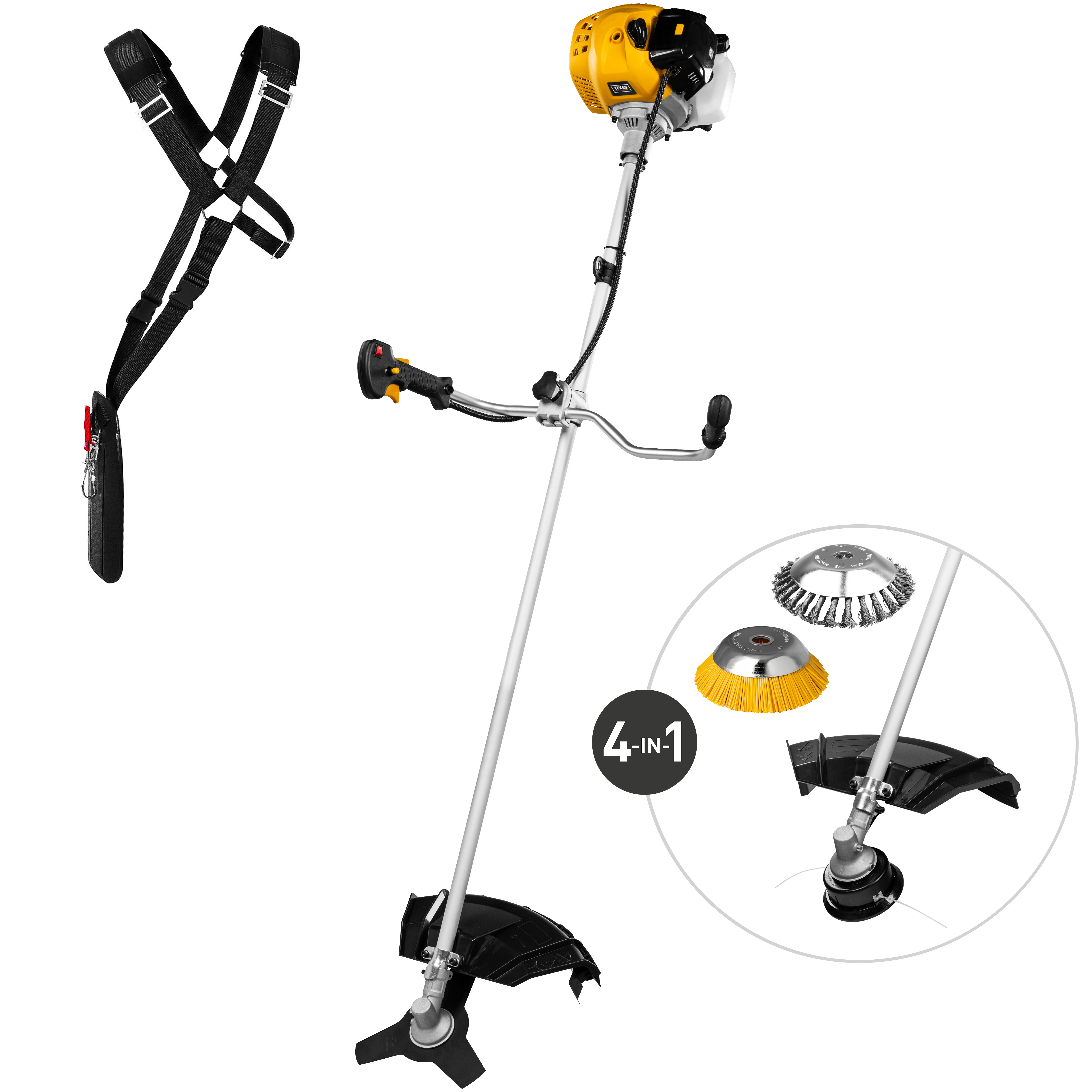 Trim græsset, ryd krattet og fjern ukrudt ved fliser og kantsten med denne buskrydderpakke fra TEXAS. Her får du benzinbuskrydderen BCU43 med en stærk 43 cc motor, så du effektivt kan trimme græs med et dobbeltsidet snørehoved (snøre 2,4 mm og arbejdsbredde 43 cm) og rydde krat med 3-tandsklingen (arbejdsbredde 25 cm).
