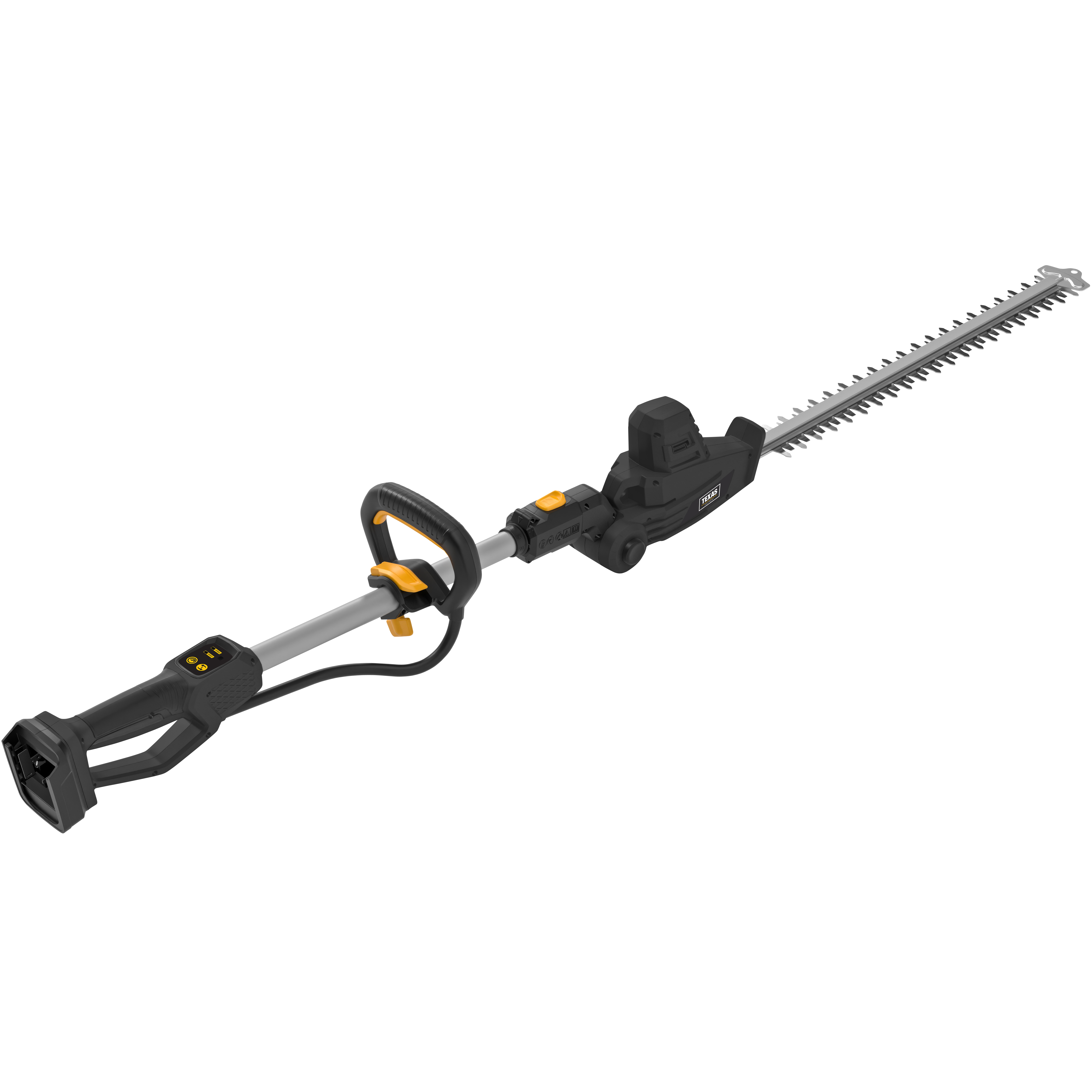 Ekstra lang hækkeklipper på batteri med justerbart klippehoved og to klippehastigheder, der både klipper den almindelige og høje hæk effektivt.