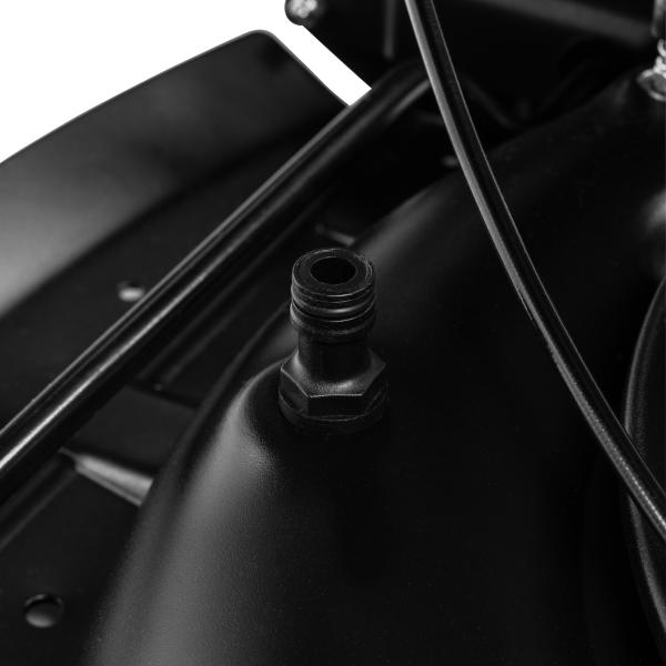 Med den indbyggede vaskestuds på siden af klippeskjoldet er rengøringen også meget let, da du blot tilslutter haveslangen og starter motoren. Så vasker kniven klippeskjoldet rent for de fleste græsrester. Og styret kan foldes helt sammen, så den fylder minimalt i skuret - og med et praktisk bærehåndtag forrest flytter du den nemt derind.